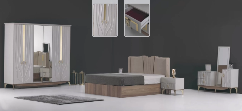 Yatak odası tasarımlarımızda, yüksek işçilik kalitesi ve özel tasarım detayları ile evinize ait bir rüya dünyası oluşturuyoruz. Her zevke uygun çeşitlilikteki yatak odası takımlarımız, farklı tarzları ve işlevleri bir araya getirerek sizin için en iyi çözümü sunar.